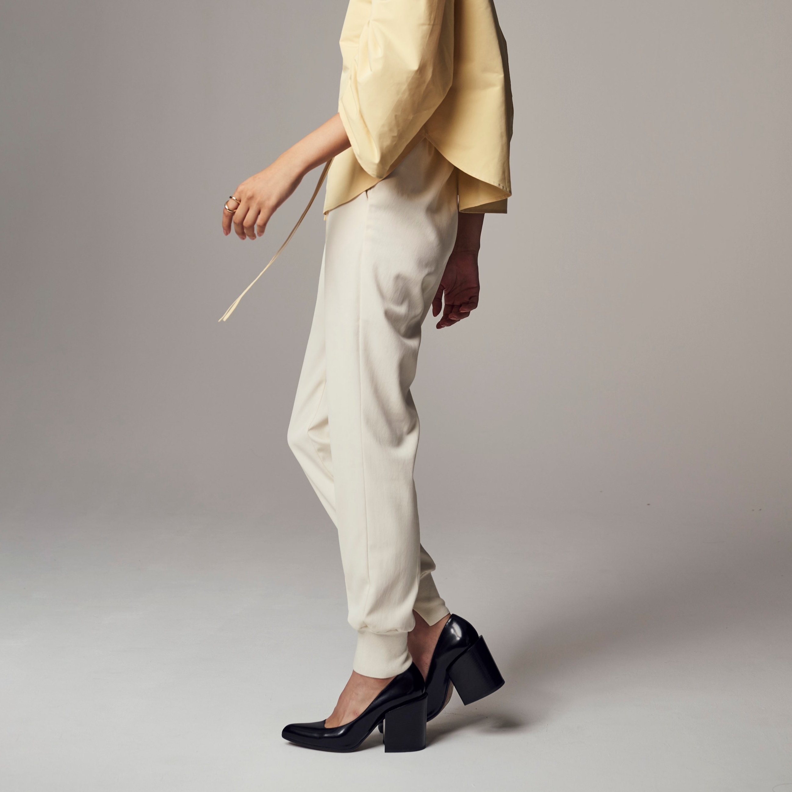 ゴルフボールが思うように飛ばない時は、ボールを追った先で見える風景を楽しんで。苦手なことも、遠回りするから見えるものがあるかもしれません。上品さと4wayストレッチを兼ね備えたジョグパンツで、アクティブな動きも美しく。